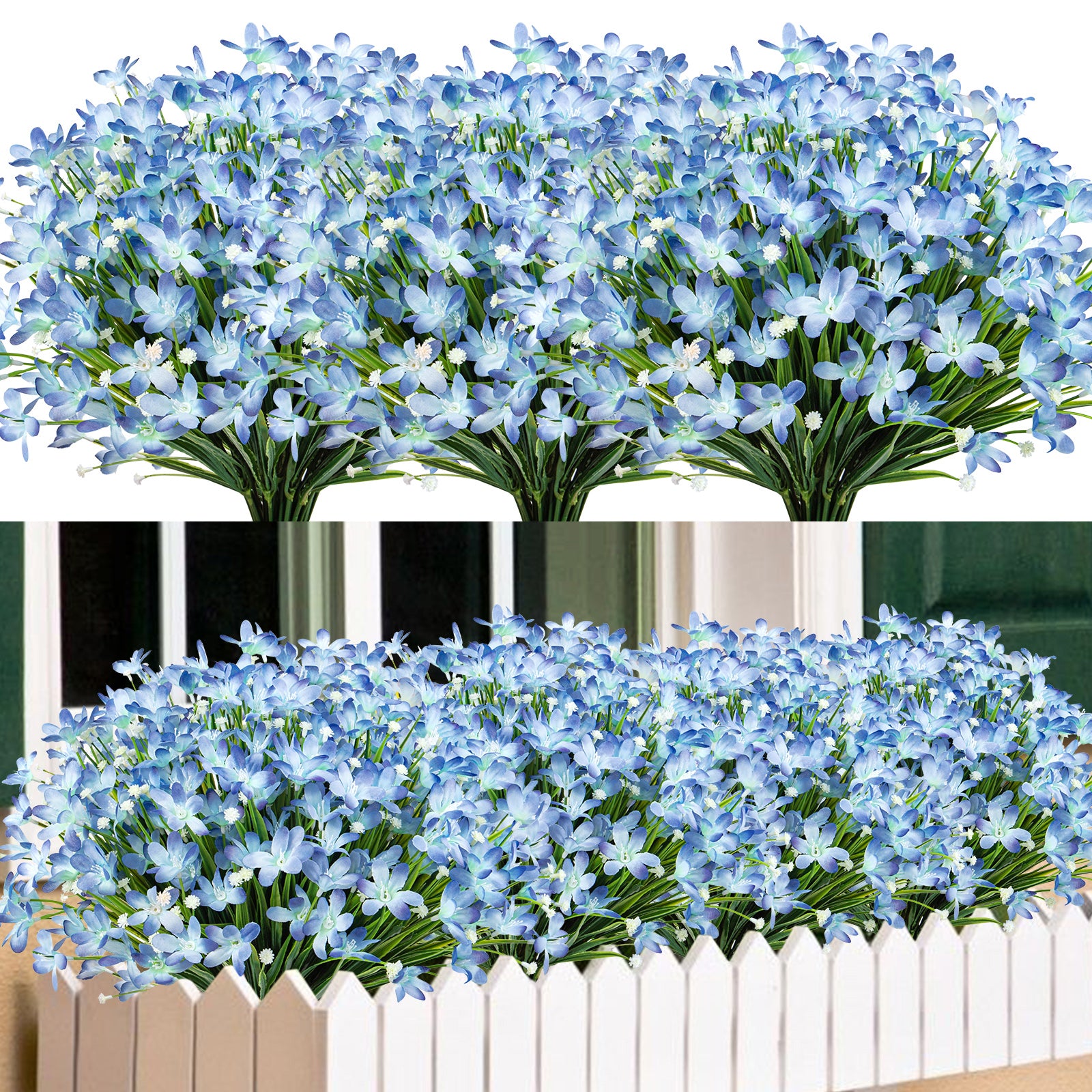 Maintenance Free: The blue fake flowers are UV resistant and never fade, upscale look are ideal for any landscaping project or decor style without having to worry about sunlight, watering, pruning or other maintenance, these faux flowers are forever-in-bloom wherever you choose to display them.
