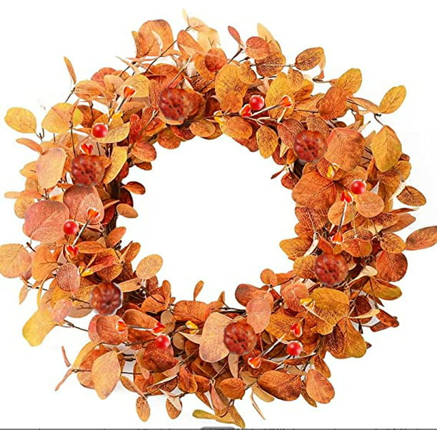 Fall Wreaths for Front Door, Artificial Wreath Eucalyptus Leaves Modern Farmhouse Wreath for Front Door Hanging, Autumn Garland Window Wall Decorations