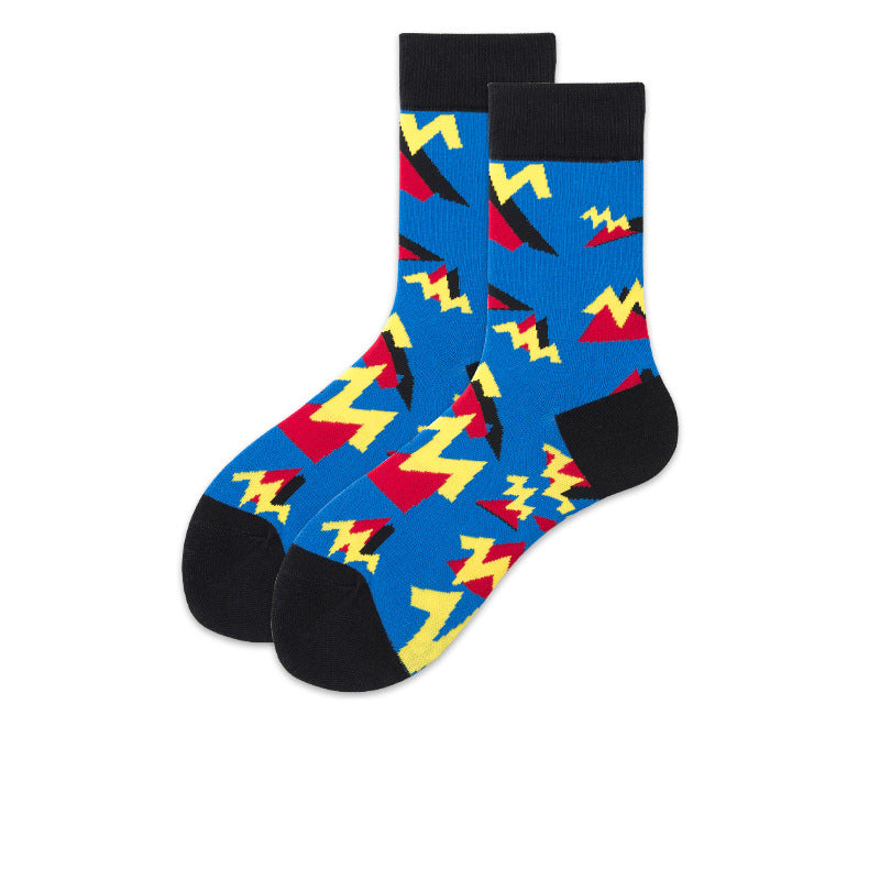 Chalier Mens Casual Crew Street Hip-hop Couple Lightning Socks